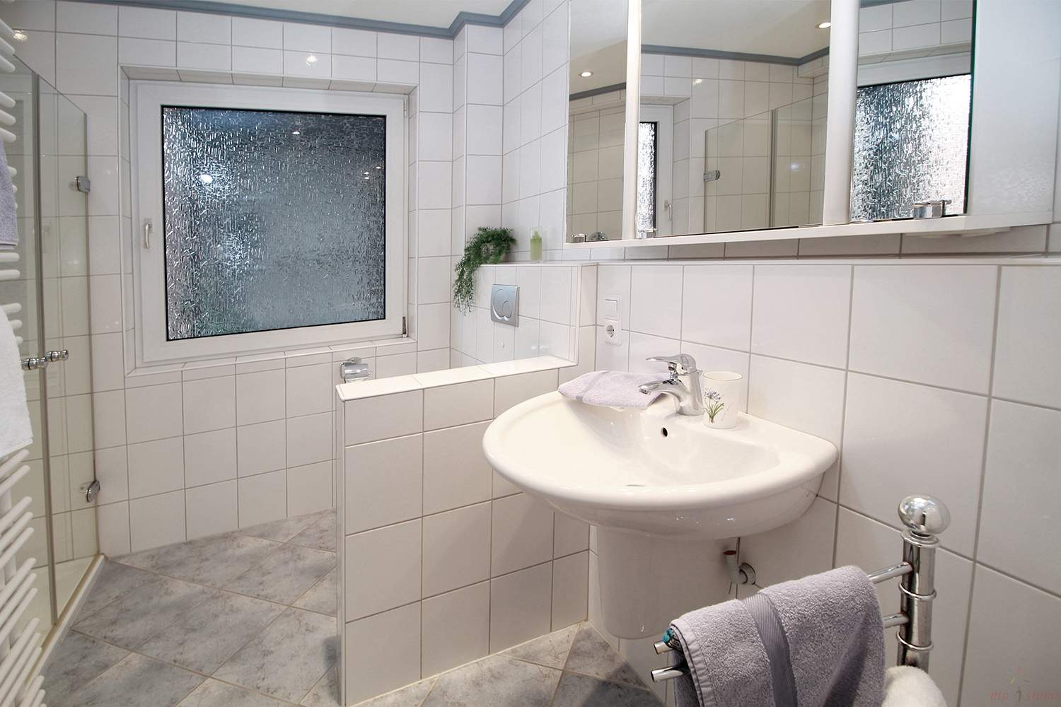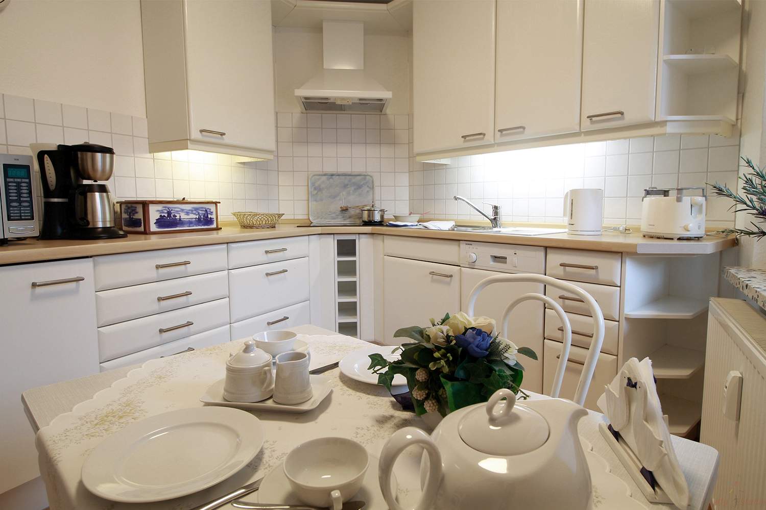 - Küche: 4-Platten-Ceranfeldherd, Mikrowelle, Geschirrspüler, Kaffeemaschine, Wasserkocher, Toaster, weißes Porzellan