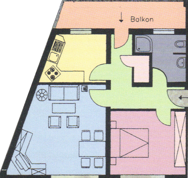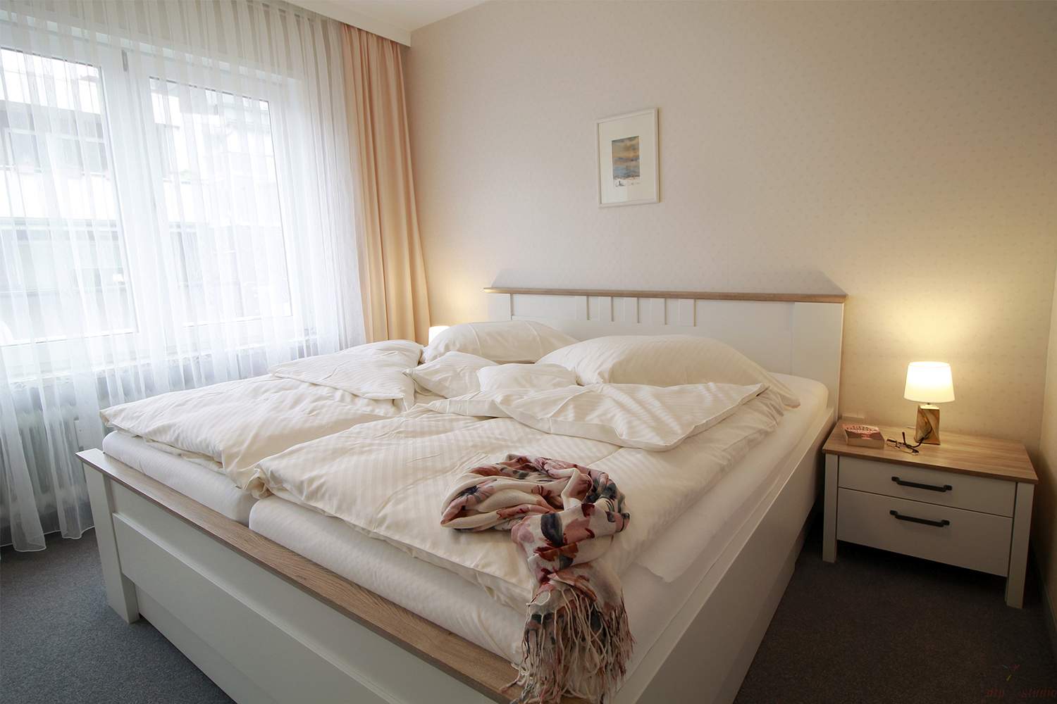 - Schlafzimmer: Bett (2x 90cm x 180cm), Kleiderschrank